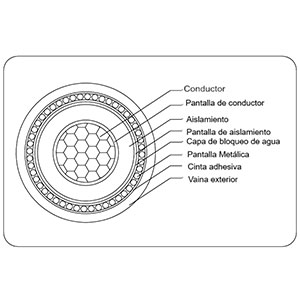 | Área Nominal del Conductor | Diámetro Nominal del Conductor | Espesor Nominal del Aislamiento | Diámetro Nominal Sobre el Aislamiento | Área Nominal de la Pantalla en Cada Núcleo | Número y Diámetro Nominal de la Pantalla Cables |